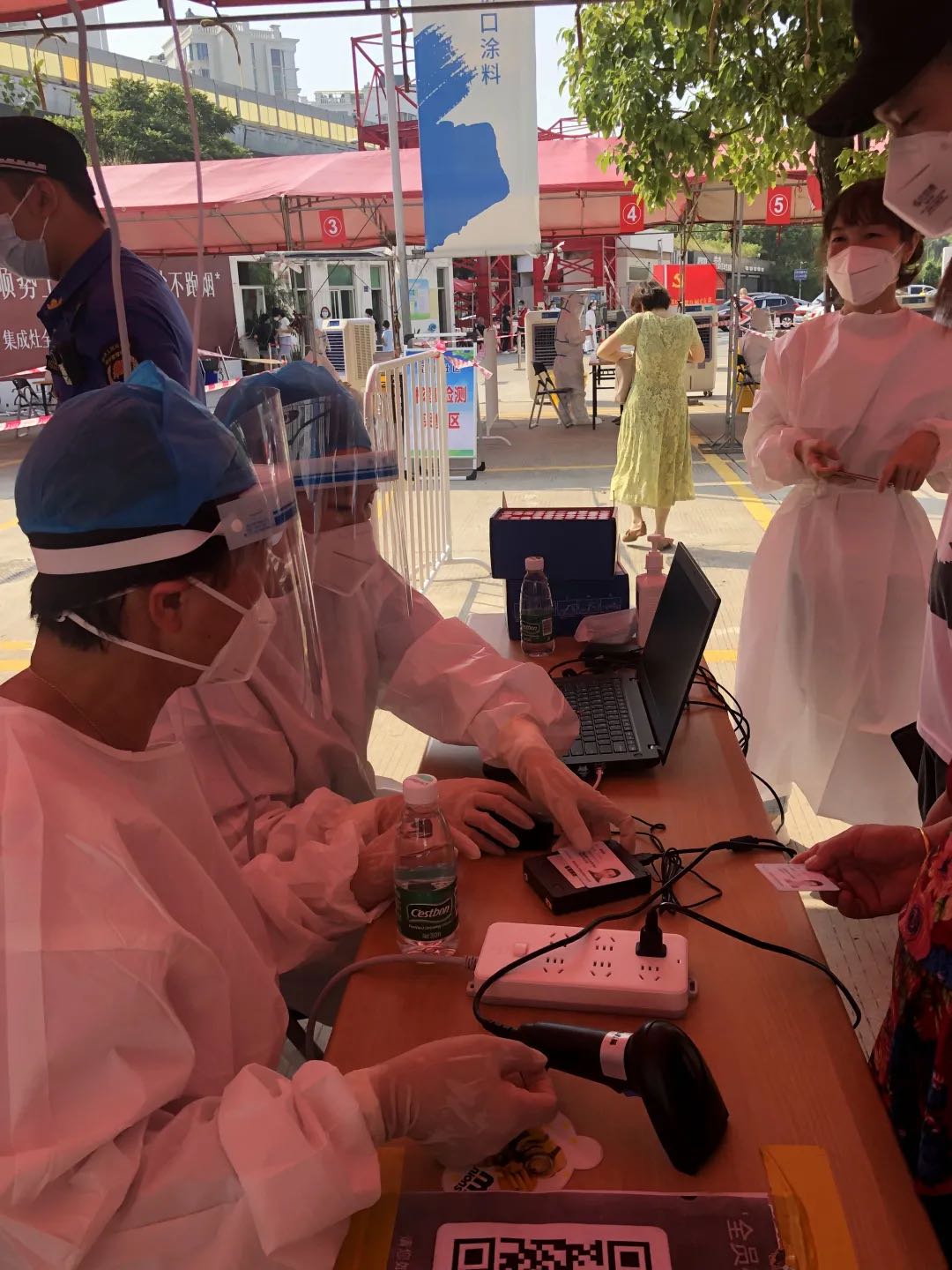从上午6:30到晚上8:00,“曾幼”的志愿者们各司其职,严谨负责每一个环节,接力上阵,高温天气,穿着厚重的防护服,顾不上喝水,更不管汗流浃背,只为帮助受检者们尽快检测。