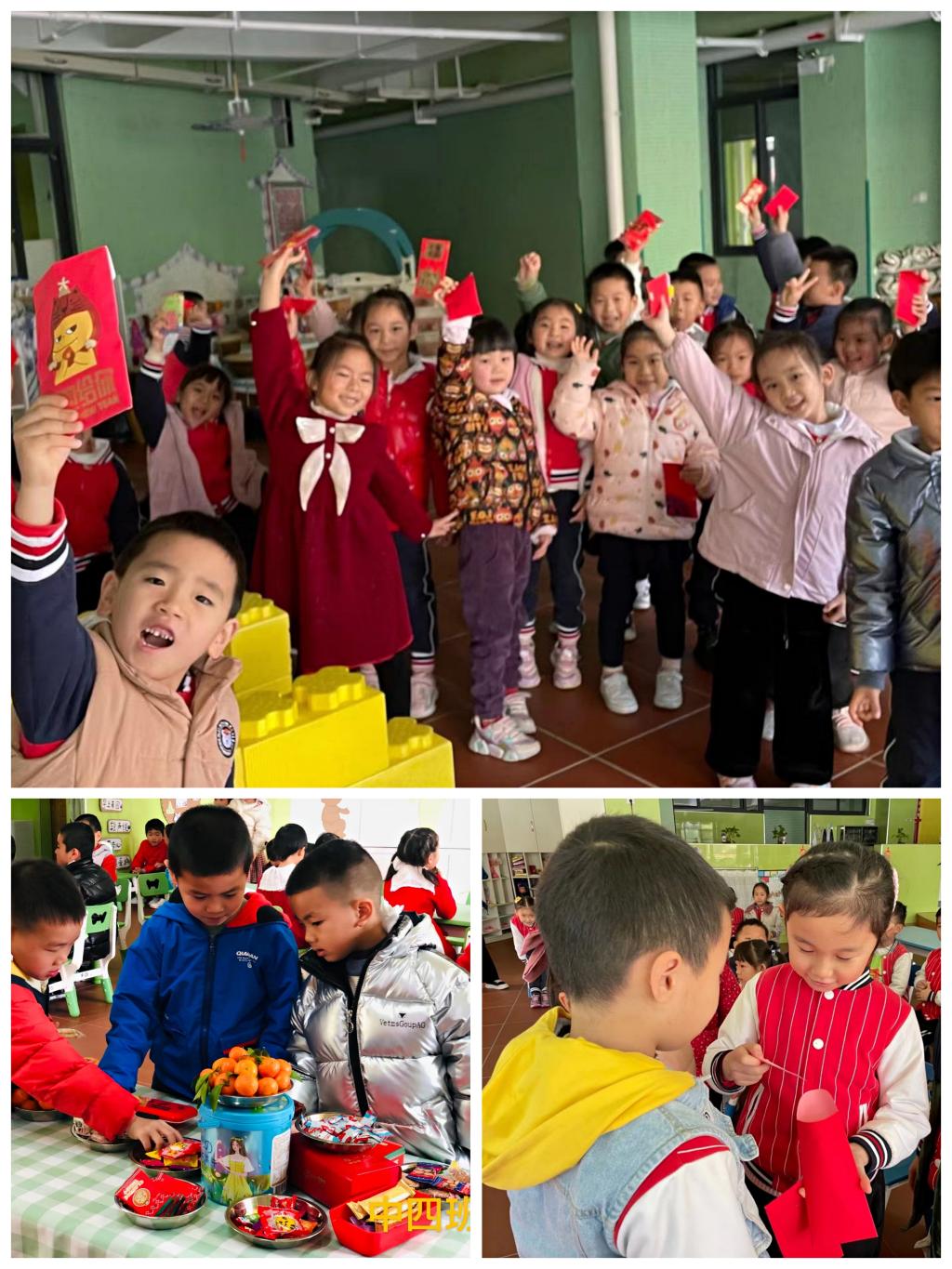 施园长早早地等在园门口,与“甜蜜吉祥虎”一起迎接萌娃归来。一个个灿烂的微笑,一声声温暖的“早上好”,孩子们的幼儿园生活快乐地开始啦!各班老师根据孩子的兴趣和年龄特点,准备了充满仪式感的游戏,让孩子们体验了别具一格的开学活动。有的班级举行了“摸福”仪式——敲鼓、摸苹果、摸橙子、摸大葱,寓意一鼓作气、平平安安、心想事成、聪明伶俐;有的班级开展了抽幸运“红包”的游戏,红包里装了“当一天的小老师”“当一次小旗手”“领操一次”等新年愿望卡;有的班级组织了“迎新茶话会”,孩子们穿新衣,吃传统美食,与小伙伴聊聊寒假趣事,畅想新学期。