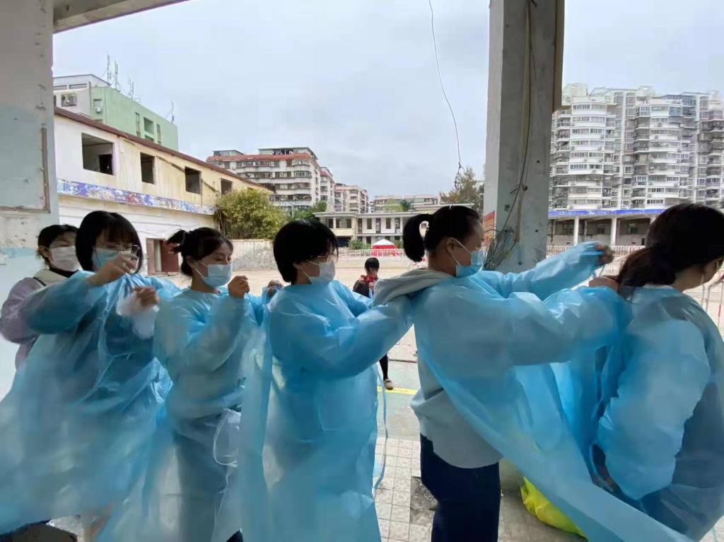 2022年3月,疫情与“倒春寒”一同袭来,校园生活按下“暂停键”,在阴雨绵绵的天气中,一群可爱的曾厝垵幼儿园党员教师们下沉社区,来到莲前街道前埔健身公园开启核酸检测志愿服务工作,第一时间缓解社区一线防疫人员的工作压力,大力支持社区疫情防控工作。