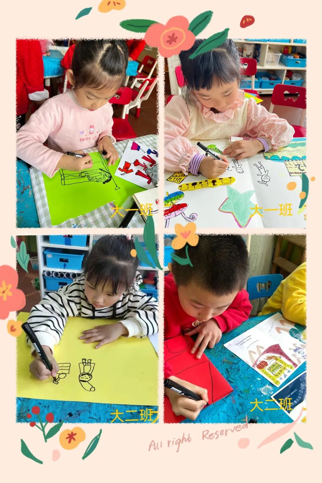 因爱而感动,为爱而行动,孩子们用灵巧的小手,制作童趣可爱的礼物,承载着一片纯真的爱。小班的孩子们玩转春日色彩,把春天的美景通通收集,装点在一幅幅画里,定格在一个个礼物中。中班的孩子们制作精美的“勋章”,送给最辛勤、最勇敢、最温暖的“她们”!大班的孩子们,为妈妈自制了专属绘本——“爱你”是一本道不完的书。每个班级都围绕不同的主题进行创作,但是都在讲述着同一份爱。