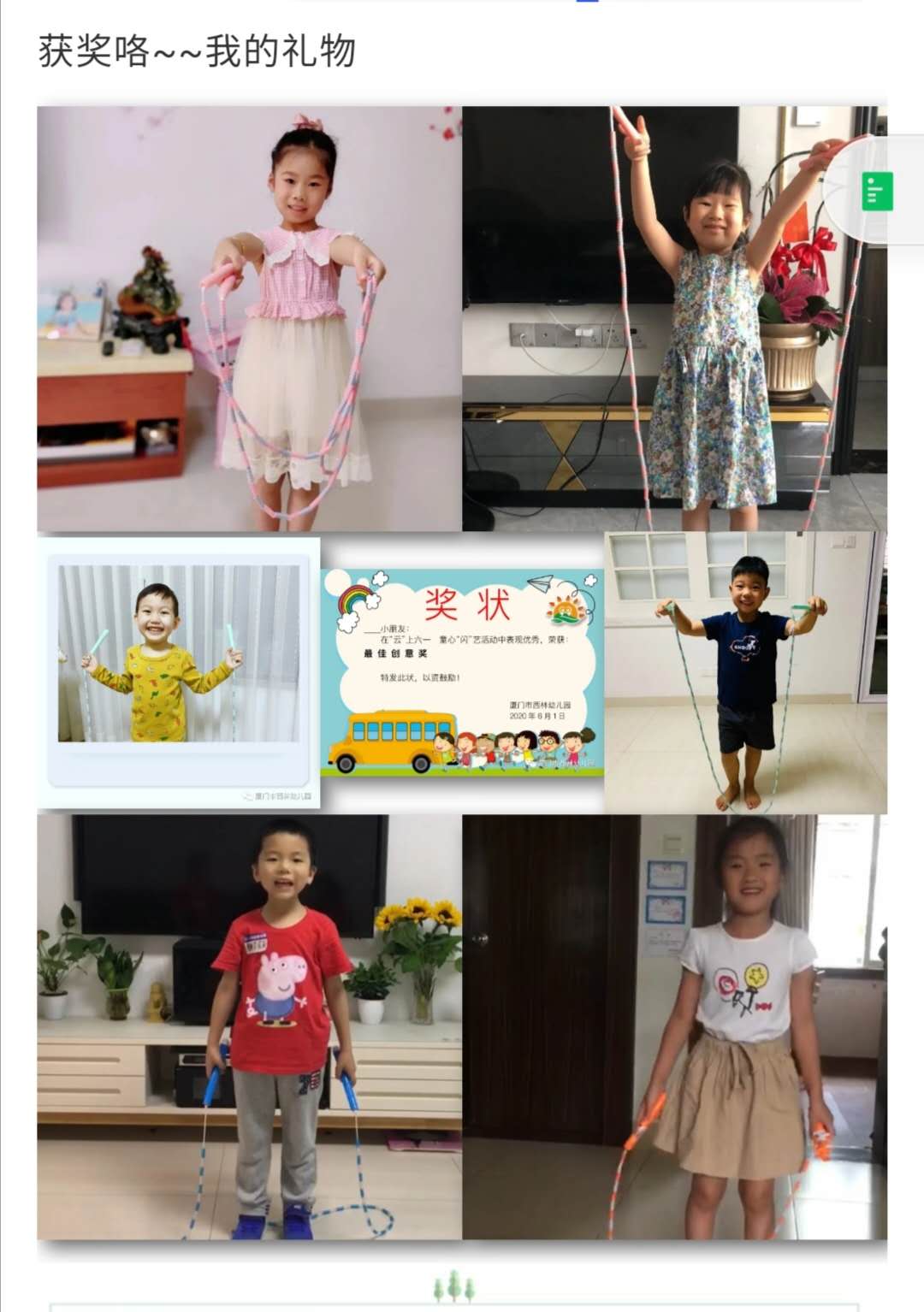 “云上六一 云端闪艺”为萌娃提供展示才艺的大舞台,中班段老师以家庭为单位,录制幼儿才艺作品发到班级微信群,进行线上“云”艺大咖秀,一起相约云端、亲子共赏,为西林中班娃创设一个充满仪式感、有成