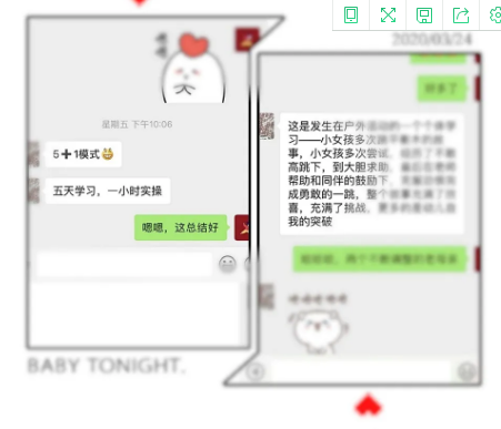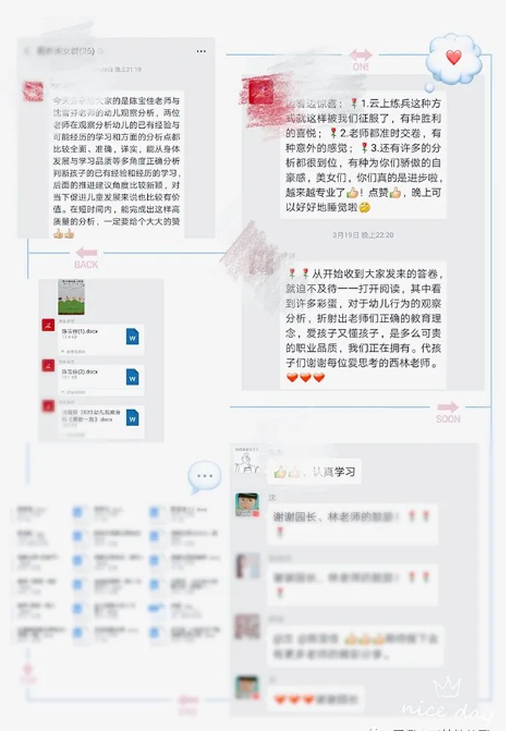 3月19号晚上七点半,在第一阶段五天学习基础上,林副园长准时在线推送幼儿游戏案例,全园教师在40分钟内,撰写一份观察记录,分析幼儿的学习与发展,提出相应的教育建议或支持策略.徐园长与林副园长也在第一时间进行点评与分析,并因人而异提出相应的指导策略。