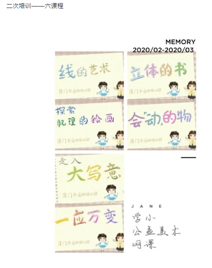 为提升和拓展美术的实践教学能力和自身艺术审美水平,西林幼儿园青年教师还参加为期七天,每天3—4个小时的厦门学小青少儿美术文化院举办“幼儿教师美术教学活动再提升”公益网课。课程结束后,青年教师第一时间将所学的内容梳理,分别制作成六个在线课程,与全园教师做二次线上课程培训,尽显青年教师风采。