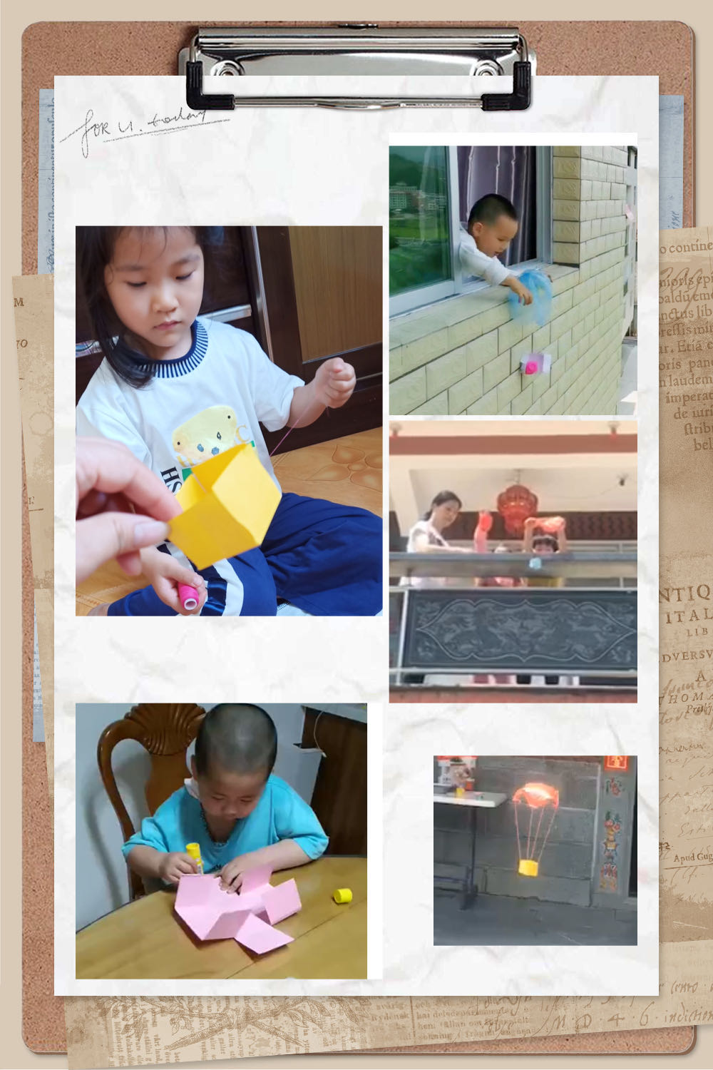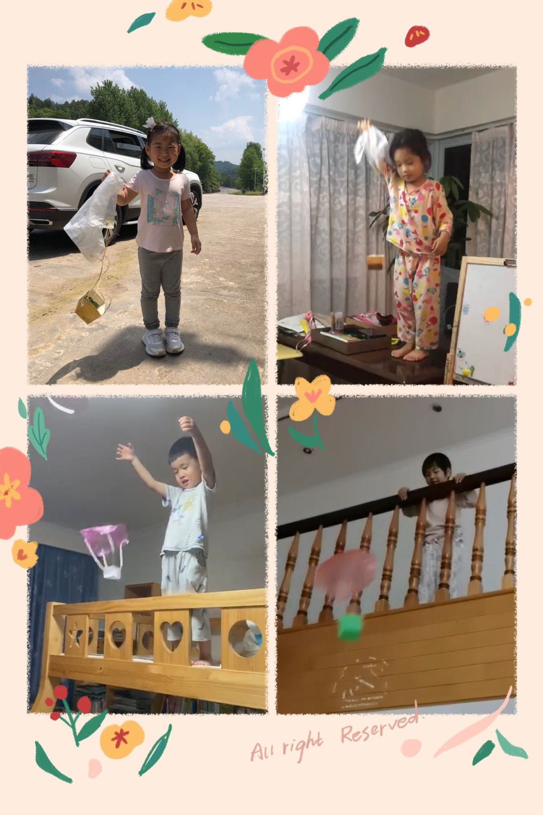 在“袋子变身”的系列活动中,孩子们大胆想象设计出各种各样的袋子和有趣的降落伞,并在活动中提升动手操作能力和科学探究能力。