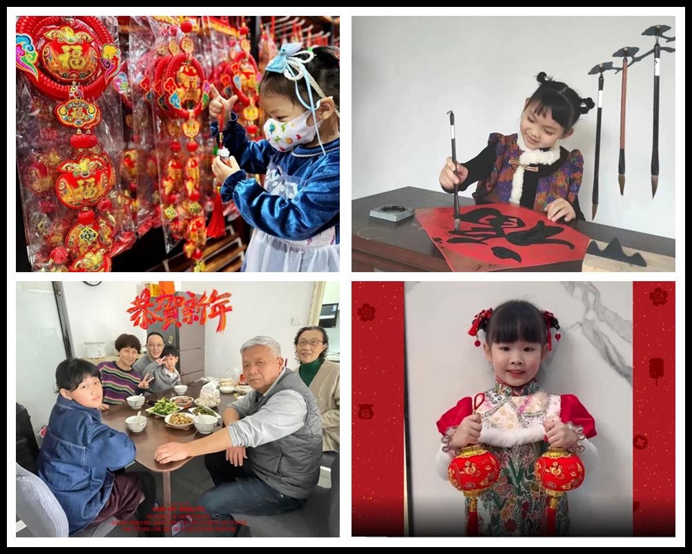 大班的小朋友和爸爸妈妈一起录制了有声绘本书《小年兽》,通过分享阅读和聆听“年”的相关绘本,了解过年的有关习俗。“小孩小孩你别馋,过了腊八就是年。”小朋友们利用假期与爸爸妈妈一起大扫除、贴春联、买年货、品美食,共同寻找年的味道。二十四,扫尘日,焕然一新过大年;买年货、贴春联,红红火火迎新年;剪窗花、贴福字,福气满满贺新年;做美食,庆团圆,围炉共享幸福年。过程中,孩子们充分感受到了浓浓的节日氛围。最后,孩子们还录制了自己的拜年视频,为大家送上了暖暖的新春祝福。