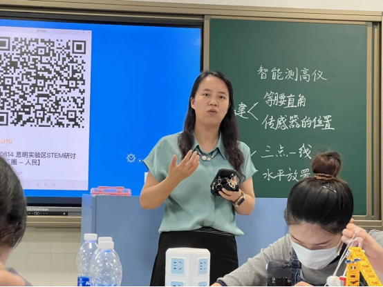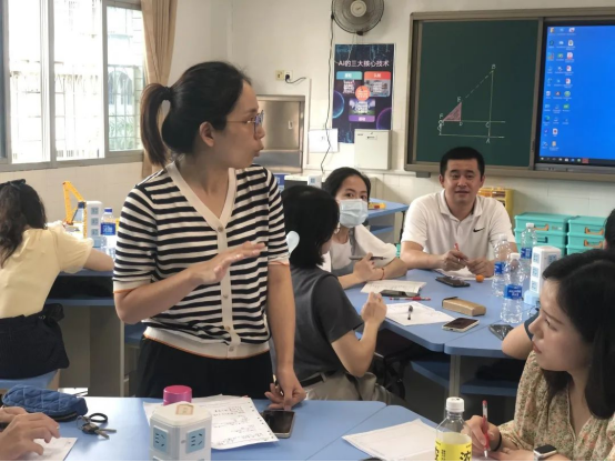 接着,参与老师们对两节课畅谈了自己的收获和困惑。人民小学的吴静雅老师认为“苏老师的这节课充分调动了不同层次学生的学习兴趣,学生的学习内驱力得到很好的激发。”厦门第二实验小学的许悦雪老师就第一节课《智能测高仪》如何与科学课中的“太阳高度角”知识点相结合提出了自己的看法;公园小学的叶小云老师就第二节课《制作一把小秤》谈自己的收获并根据自己的教学经验分享了许多教学细节。