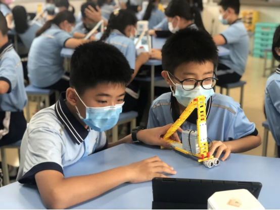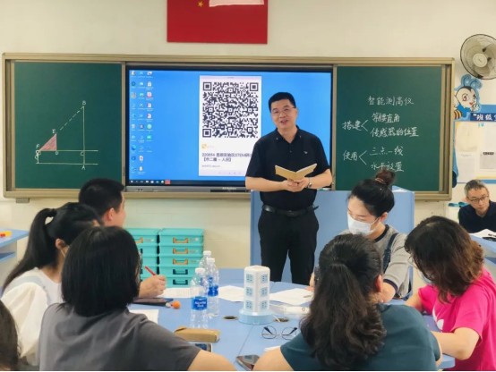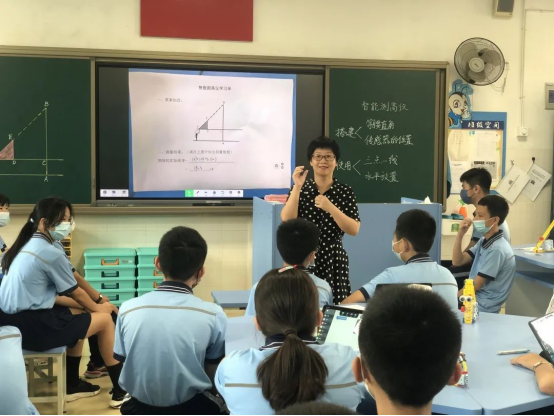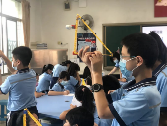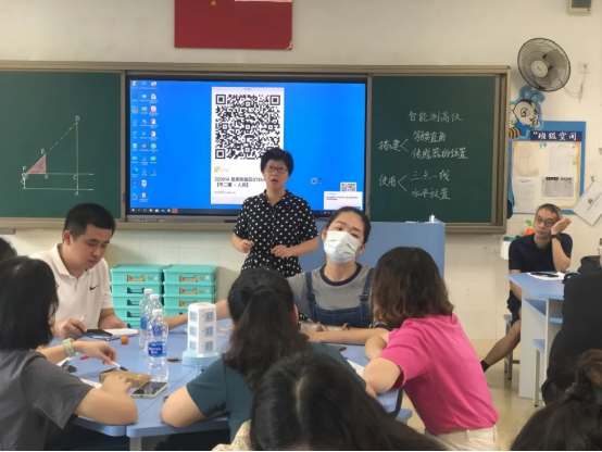 第一节课《制作测高仪》由厦门市人民小学林晓老师执教。林老师通过“数学课”中的一道测量影长的习题,引发了将数学和人工智能结合的思路,以“测量窗户高度为教室窗帘换新”为真实情景作驱动,引导学生展开探究,开展本次STEM校本课程。本节课展示的是该课程的第三课时,学生在学习原理、搭建基本模型后,经历了“初测——发现问题——解决问题——优化产品”的过程。通过项目式学习,构建了“原理学习、研究制作、测量体验、评价修正”等环节,凸显了学习者调查探究、合作交流以及验证反思的过程,不断促进学生跨学科思维能力、批判思维能力和合作交流能力的提升。